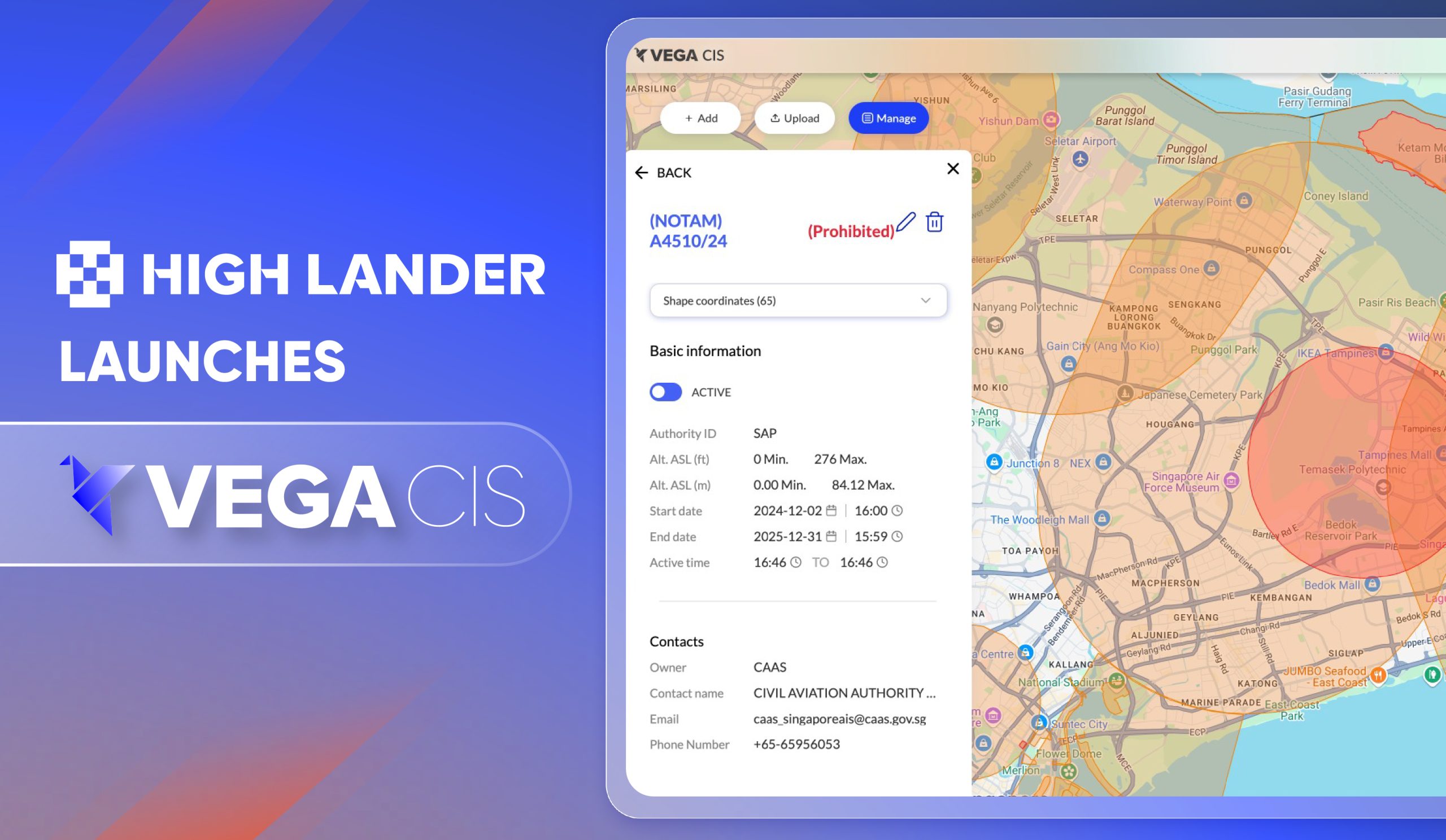 Vega CIS joins the solutions of Vega Hub, comprising Vega UTM, High Lander’s proprietary UAS traffic management solution, and Vega Fly, a mobile app for drone operators to receive airspace data and flight plan authorization. Together, they provide an end-to-end suite of software solutions for the management of UAS traffic.