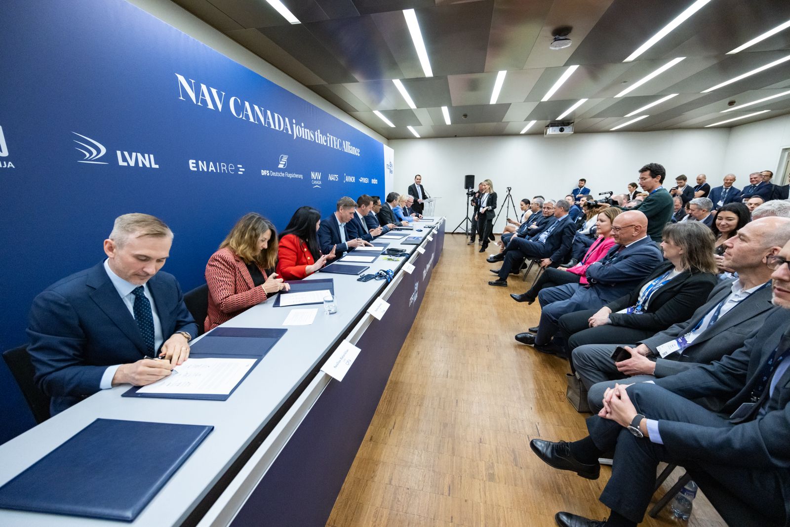 The signing took place today at the Airspace World event in Geneva which has brought together some of the main players in air traffic management ecosystem. Mark Cooper, Vice-President and Chief Technology and Information Officer on behalf of NAV CANADA, and the main representatives of the iTEC Alliance, Dirk Mahns, DFS COO and Chairman of iTEC Board; Kuldeep Gharatya, NATS Technical Services Director; Laura Garcés, ENAIRE Deputy Director ANS; Jan-Gunnar Pedersen, Avinor ANS CEO; Magdalena Jaworska-Maćkowiak, PANSA President; Marlou Banning, LVNL CFO; Saulius Batavičius, Oro Navigacija CEO; and Javier Ruano, Indra’s ATM General Director, signed the agreement.